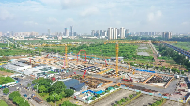 南珠中城际项目线路起于广州市南沙区万顷沙站(既有),止于中山市兴中站。公司承建的南珠中城际NZZ-1标三工区,线路总长约5.2公里,包含2站2区间,分别为中山站、张家边站、中山站~张家边站区间、烟筒山停车场出入场线的土建工程。